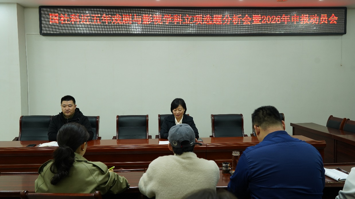 10月16日下午,hg皇冠官网在311会议室召开“国家社科基金近五年戏剧与影视学科立项选题分析会暨2026年申报动员会”,全面启动新一年度的项目申报工作。学院副院长田华及学院多位科研骨干教师参会,会议由戏剧影视文学系系主任段金龙主持。