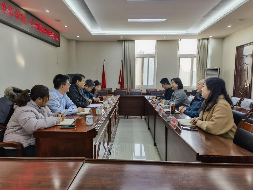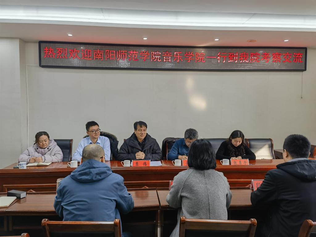 12月5日,南阳师范学院音乐学院院长季伟、副院长党岱、研究院院长刘振涛、研究生秘书张李子一行莅临hg皇冠官网调研交流。学院副院长田华、陈长旭,戏剧与影视文学系主任段金龙、专任教师王璐瑶参加座谈交流。