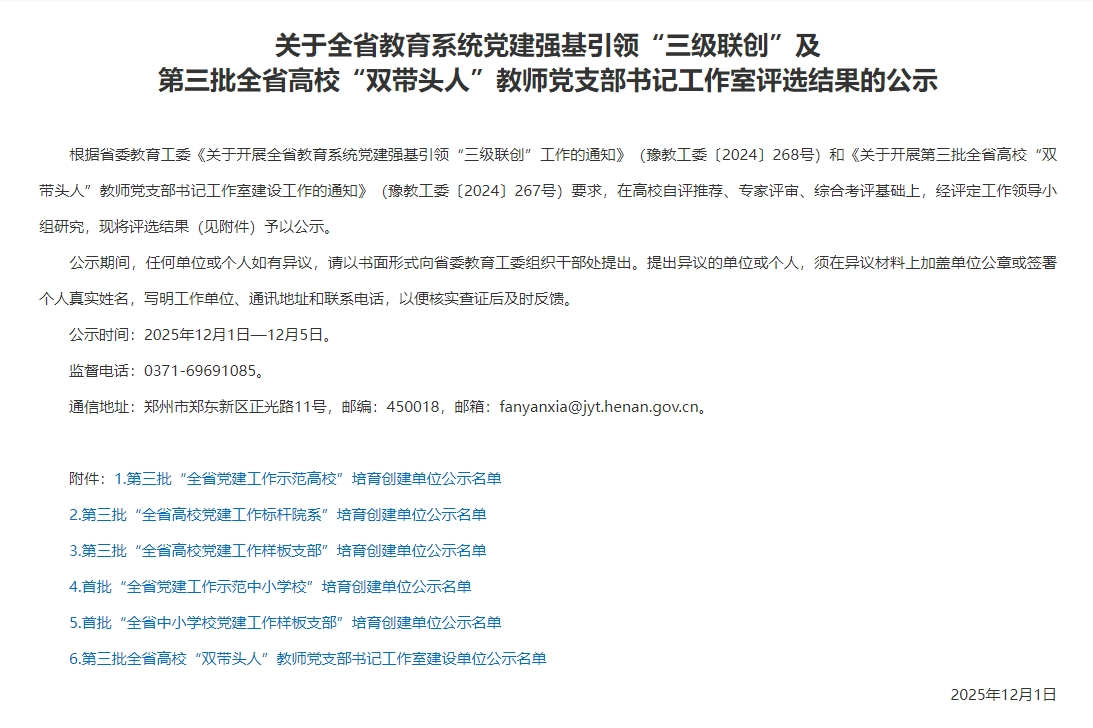 12月1日,全省教育系统党建强基引领“三级联创”及第三批全省高校“双带头人”教师党支部书记工作室评选结果公示,我院教工第四党支部经过层层选拔,成功入选全省高校“双带头人”教师党支部书记工作室建设单位,是hg皇冠官网继2024年入选“全国皇冠体肓官网登录样板支部”培育创建单位、教育部首批“双带头人”教师党支部书记“强国行专项活动”之后皇冠体肓官网登录的又一次突破。