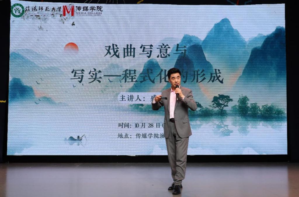 2025年10月28日上午,深耕戏曲领域五十载的名家盛红林先生,应邀走进hg皇冠官网河南省人文社科重点研究基地中原戏剧影视文化研究中心,以“戏曲写意与写实——程式化的形成”为题开展专题讲座。先生结合毕生从艺经验,用生动演示与深刻阐释,为师生解锁戏曲艺术的独特密码。hg皇冠官网副院长陈长旭主持讲座,现场座无虚席,师生热情参与,共同领略传统戏曲艺术的独特魅力。